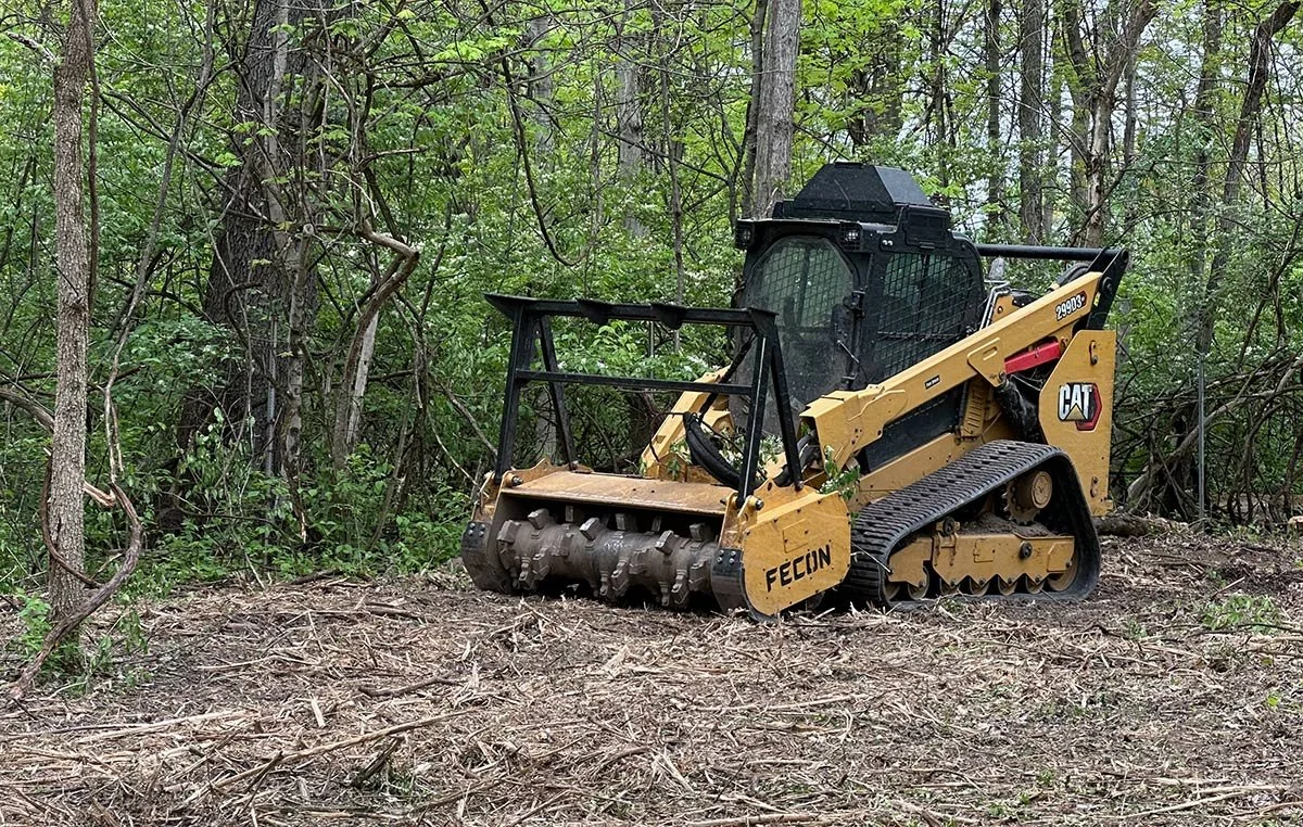In May 2025, restoration professionals cleared several acres of bush honeysuckle from the forest understory in the northwest section of the park using a forestry mulcher. Asian bush honeysuckle is one of the most harmful invasive plants in Indiana. Controlling its establishment and spread is a constant battle for land stewards and conservationists because dense thickets of these woody shrubs are prevalent throughout the urban landscape.