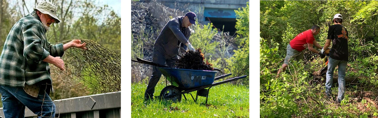 When we began our work in 2022, park visitors were greeted by defaced signage and rundown amenities; forest floors covered in bush honeysuckle; a neglected, overgrown park entrance; sections of sewer pipe and other concrete debris; rusting remnants of an industrial past; and more than 1,000 feet of fencing scattered throughout the landscape.