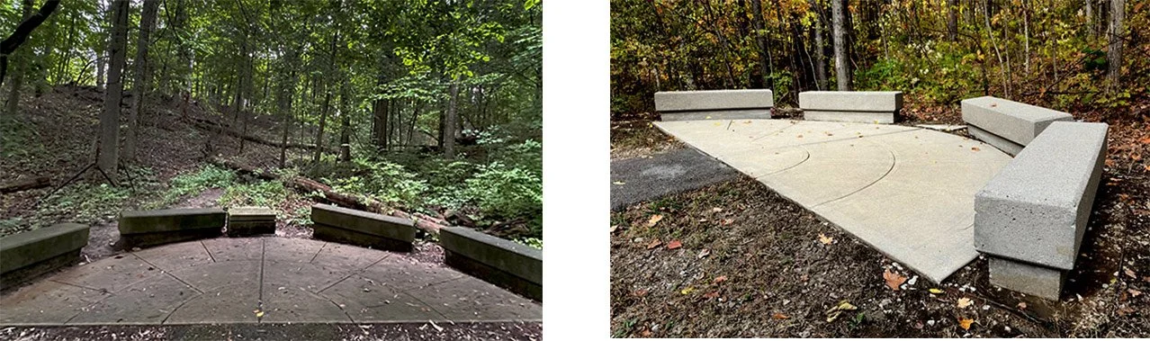 Two months later, an Indianapolis DPW crew took out six concrete bases in the park’s seating areas. These bases once held interpretive signs but became an eyesore along the Skiles Test and Fall Creek trails when Indy Parks adopted new signage standards. In December, we joined the Millersville at Fall Creek Valley group in advocating for their removal. The project was completed by the end of January 2025.